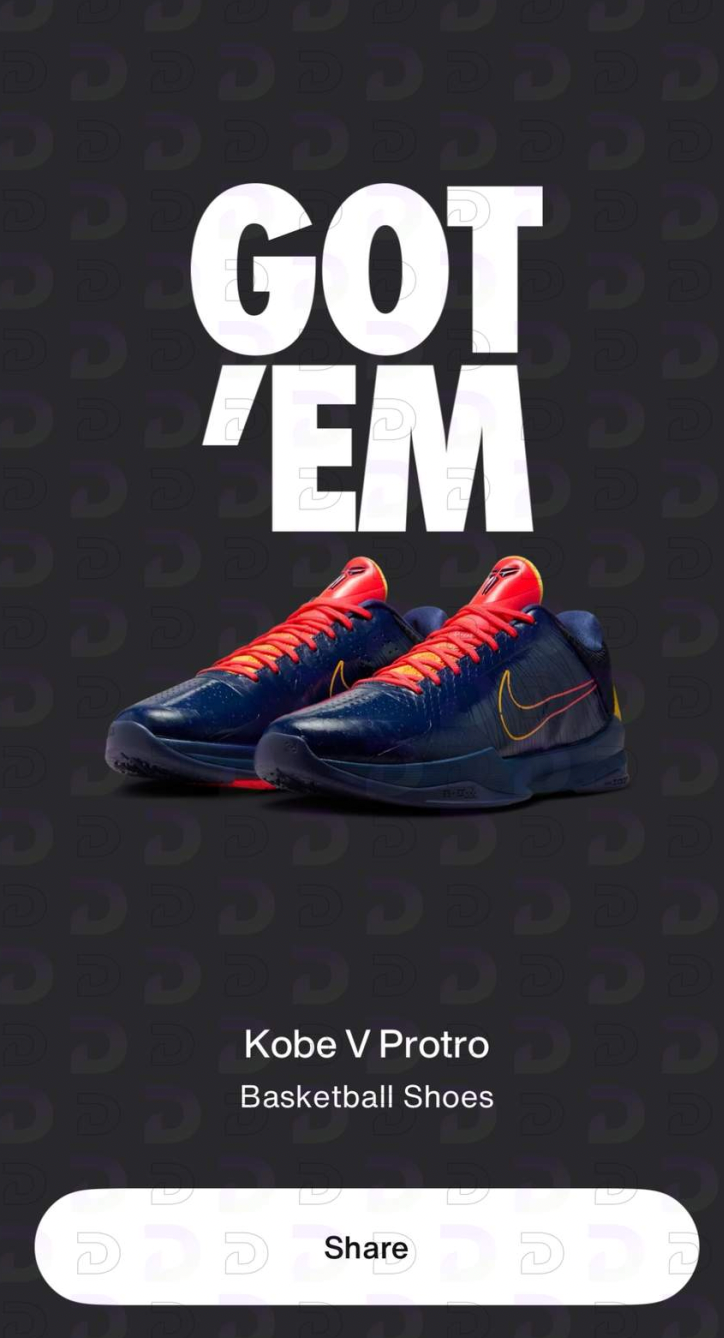Once it's live, pick your size and confirm your order. Then, you must wait for your results. If you win, SNKRS will send a "GOT'EM" notification. If not, you'll get a "THANKS FOR ENTERING" alert.